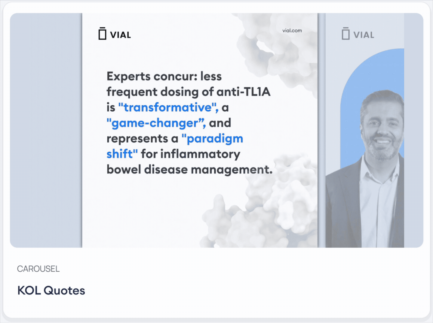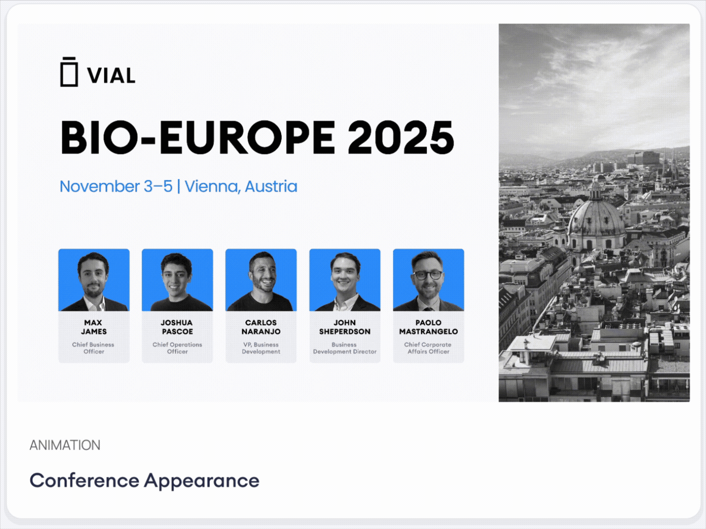 Vial launched a TL1A program targeting inflammatory diseases, and I developed the branding system and visual guidelines for it. Designed a presentation template to maintain visual consistency in company decks. Designed marketing graphics for the launch announcement, patient recruitment campaign, and conference materials.